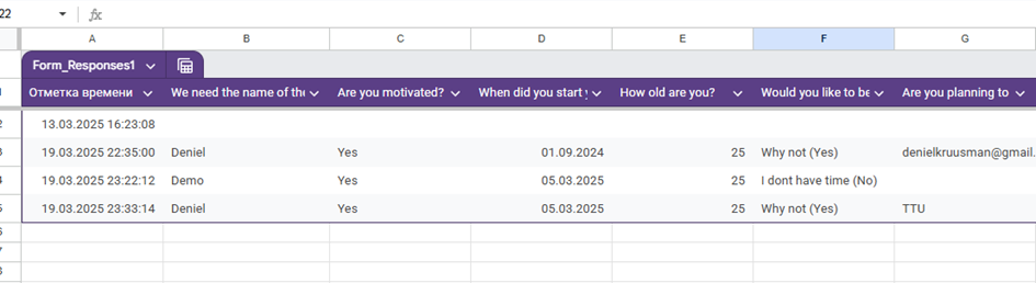 GoogleTable salvestab vormisisestused