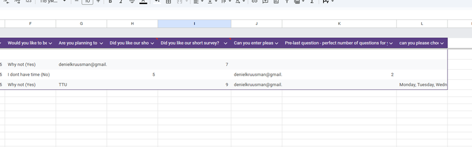var clientEmail = listAnswers.getRange(listAnswers.getLastRow(), 10).getValue();
